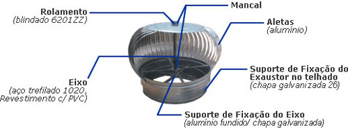 Os exaustores eólicos proporcionam uma renovação constante de ar em sua empresa ou residência não importando o tamanho de sua construção, sem consumo de energia, já que utilizam energia dos ventos para funcionarem. O ar renovado proporciona clima mais agradável, eliminando o pó e deixando o ambiente muito mais saudável. O exaustor eólico foi projetado com o princípio de renovar a massa de ar quente e odores de ambientes em geral. Utilizando o vento e a mais leve brisa como energia.