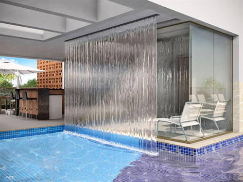 Podem ser elaboradas nos mais diversos estilos como: com distribuidor, duas quedas, efeitos espumantes, vários níveis, vertedor (iluminado ou não), de embutir, em parede, em pedra, em vidro, em roda d’água. Podem ser utilizadas em ambientes internos e externos, simulando o ambiente natural com grande similaridade, como por exemplo, o barulho das quedas d’água.